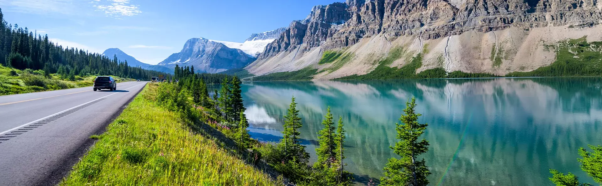 Wir weisen darauf hin, dass Sie heute aus British Columbia in die Provinz Alberta fahren. Gleichzeitig wechseln Sie die Zeitzone: In Alberta ist es eine Stunde später als in British Columbia.