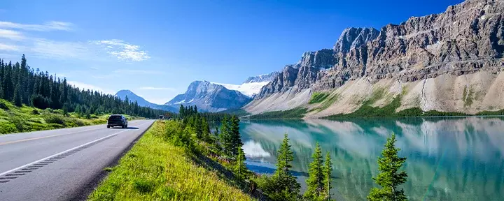 Verlassen Sie Banff schon früh, um genügend Zeit für die heutige Strecke und eine der schönsten Straßen der Welt zu haben: den Icefields Parkway. Es ist der Highway 93 North, der nach dem größten Gletscher in den kanadischen Rockies, Columbia Icefields benannt wurde. Der Icefields Parkway ist eine 230 km lange Gebirgsstraße, die fast parallel mit dem Gletscher durch die kanadischen Rockies führt. Müssen wir noch mehr sagen? Halten Sie an einem der schönste Seen unterwegs an, dem Peyto Lake. Von dem Parkplatz laufen Sie etwa eine Viertelstunde bis zu dem ikonischen Aussichtspunkt auf den See.