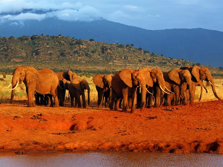Unterwegs, von Nairobi nach Mombasa, halten Sie für drei Nächte im größten Nationalpark Kenias, Tsavo, mit ausreichend Zeit für Pirschfahrten und um die beeindruckende Natur zu genießen.