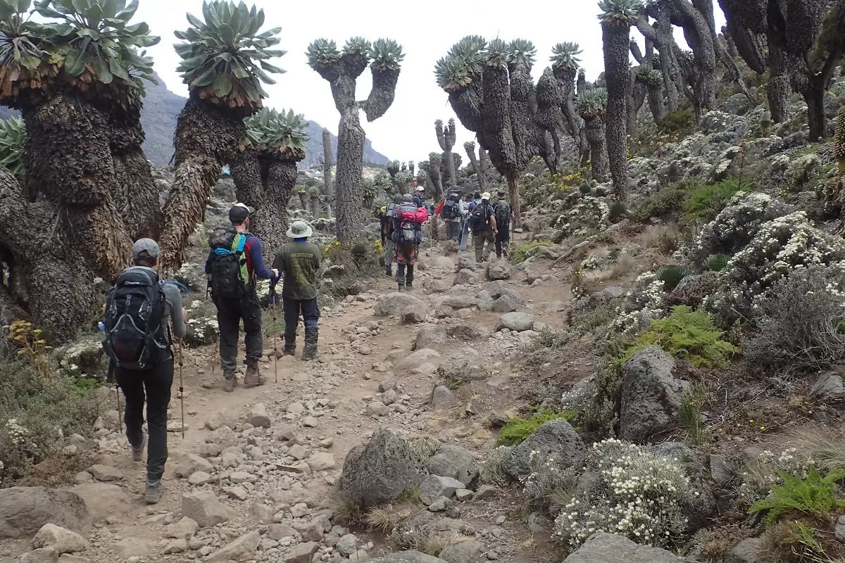 Nach einem drei Stunden dauernden Abstieg zum “Barafu Camp” bekommen Sie eine wohlverdiente, aber kurze Pause; und dann geht’s weiter runter auf einem felsigen und steinigem Pfad bis zur Hochebene und eventuell in den Wald hinein zum “Mweka Camp”. Dieses Lager befindet sich im oberen Wald, wo man am späten Nachmittag Nebel und Regen riskieren kann. Das Beste ist, dass hier warmes Wasser und Essen warten.