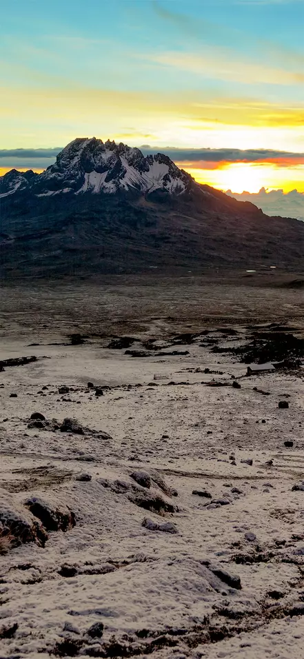 Die heutige Wanderetappe führt zum Barafu Camp. Sie wandern durch die atemberaubende, spektakuläre Landschaft, die von kleinen und großen Vulkansteinen übersät ist, die Zeuge der früheren vulkanischen Aktivität sind. Das letzte Stück zum Barafu Camp erfolgt auf der Mweka-Route. Auf der Route können Sie die Aussicht zum Kibo und Mawenzi genießen.