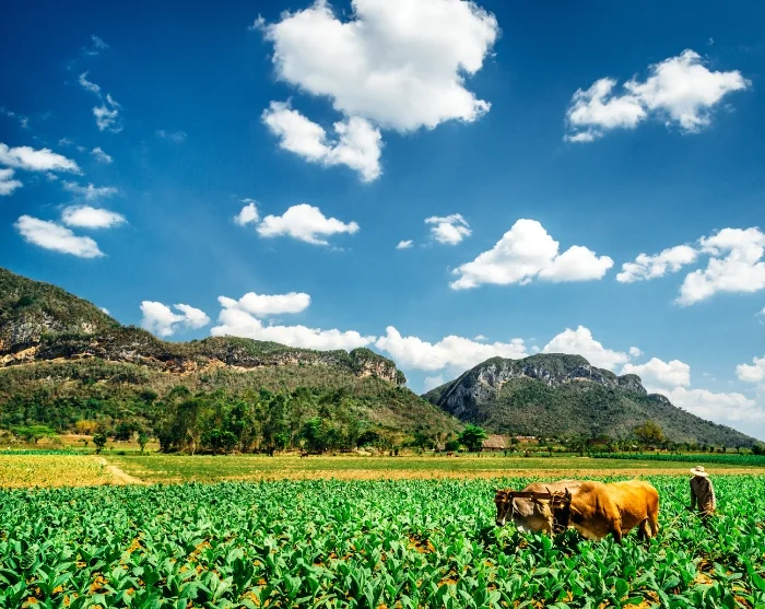 Von der bunten Hauptstadt des Landes geht es weiter aufs Land zum fruchtbaren und idyllischen Viñales-Tal, in dem u. a. Tabakpflanzen angebaut werden, die zu einigen der allerbesten Zigarren der Welt verarbeitet werden.