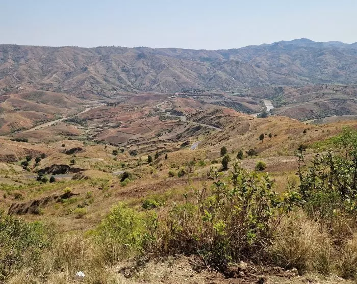 Nach ein paar Stunden Fahrt durch eine hügelige Plateaulandschaft mit vielen Reisfeldern ändert sich die Landschaft. Die Hügel werden höher und die Wälder dichter. Hier und da können Sie den Fluss am Boden der Täler erspähen.