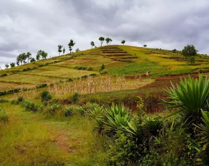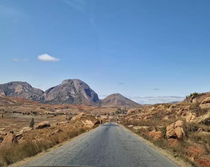 Vom Anja-Reservat aus fahren Sie weiter in südwestlichere Richtung, und die Landschaft ändert sich erneut. Sie fahren durch die Berge und hinauf in die Stadt Ihosy – eine etwa zweistündige Fahrt. Sie befinden sich nun auf einem Hochlandplateau, dem Horombe Plateau, das die Heimat des Bara-Stammes ist.