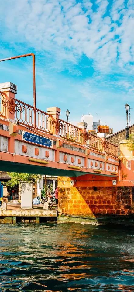 Wenn Ihr kulinarisches Verlangen gestillt ist, geht die Tour weiter, indem Sie an Bord eines kleinen, überdachten Bootes für eine 40-minütige Fahrt entlang der historischen Routen des Melaka-Flusses gehen. Seit dem 15. Jahrhundert war der Fluss ein zentrales Handelszentrum für ganz Südostasien. Heute bietet er eine andere Perspektive auf die charmante Stadtlandschaft Melakas. Lehnen Sie sich zurück und genießen Sie die Aussicht auf gepflasterte Straßen, antike Brücken und bunte Kaufmannshäuser, während Sie auf dem Wasser vorbeigleiten.