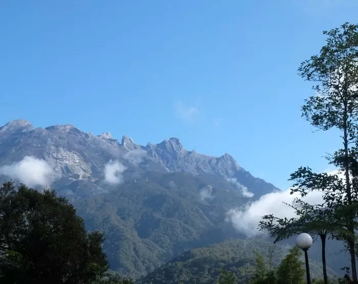 Am Horizont beginnen Sie den höchsten Berg Südostasiens, den Kinabalu, zu erahnen, der sich langsam nähert. Der Anblick des majestätischen Berges allein ist ein Erlebnis für sich.