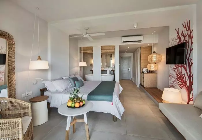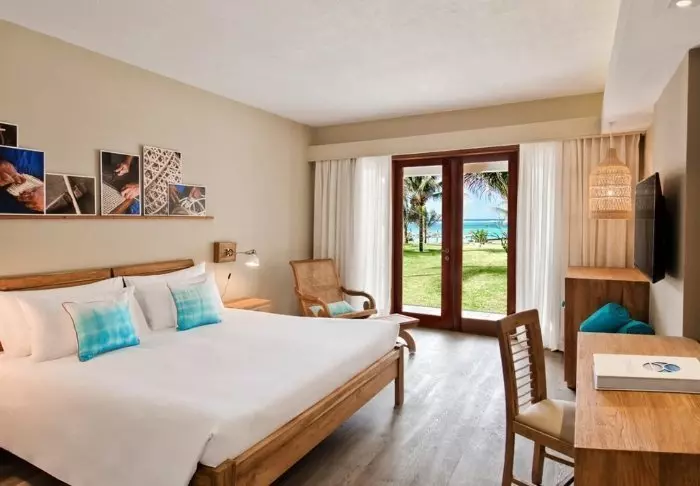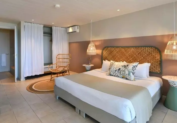 Die „Prestige“-Zimmer im Südflügel sind farbenfroh und mit viel Persönlichkeit dekoriert, während die etwas größeren „Deluxe“-Zimmer im Nordflügel etwas gedämpfter und luxuriöser sind. Das All-inclusive-Konzept umfasst eine Minibar auf dem Zimmer, die täglich mit Bier, Erfrischungsgetränken und Wein (falls gewünscht) aufgefüllt wird, zusätzlich zu allen Mahlzeiten des Tages. Auch in Bezug auf das Essen hebt sich C Mauritius ab (und zwar positiv, wenn Sie uns fragen). Sie können z. B. zur Mittagszeit Ihr Essen und ein kaltes Bier im Selbstbedienungsrestaurant des Hotels abholen und mit zum Strand nehmen oder auf Ihrem Balkon essen. Kein Grund, sich umzuziehen und auf einen Kellner zu warten – es sei denn, Sie möchten das gerne, denn das ist natürlich auch möglich!