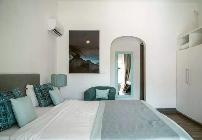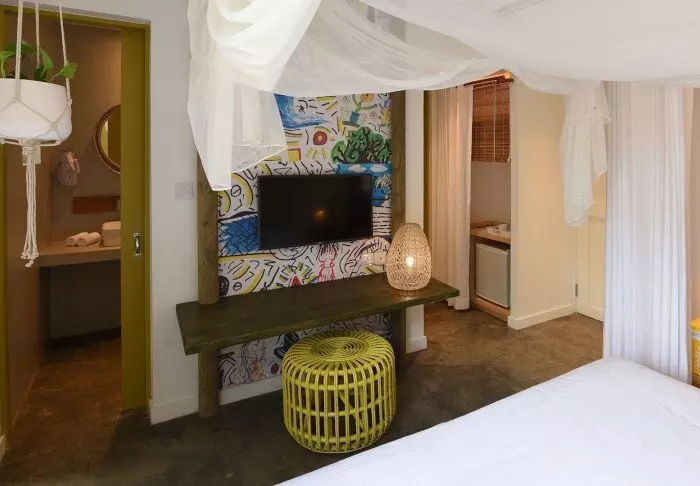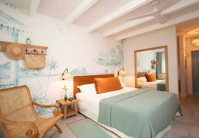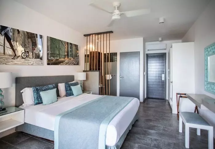 Das Hotel verfügt über 116 Zimmer, die alle über eigene Badezimmer, Klimaanlage, Möglichkeiten zur Tee- und Kaffeezubereitung, Minibar und kostenloses WLAN verfügen. Die Zimmer sind sehr charmant, mit geschmackvollen Farben, die sowohl einladend und modern als auch retro wirken. Alle Zimmer verfügen über einen privaten Balkon oder eine Terrasse. Jedes Zimmer ist außerdem mit einem „Strandset“ ausgestattet, das einen Korb mit Handtüchern und Strandmatten und sogar Ihre eigene Kühltasche umfasst.