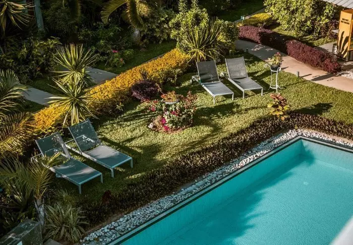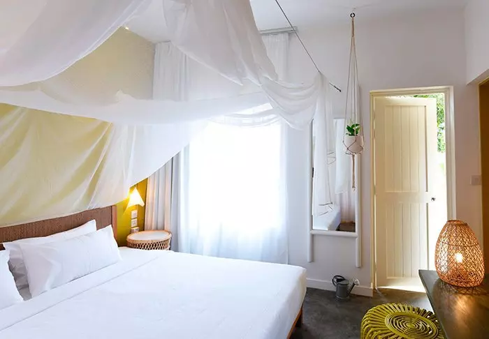 Hier gibt es keine hohen Mauern oder elektrischen Tore. Stattdessen gibt es Hängematten, Sand auf dem Boden in der Lobby und eine gemütliche, charmante und intime Atmosphäre.