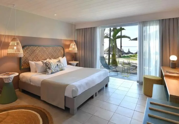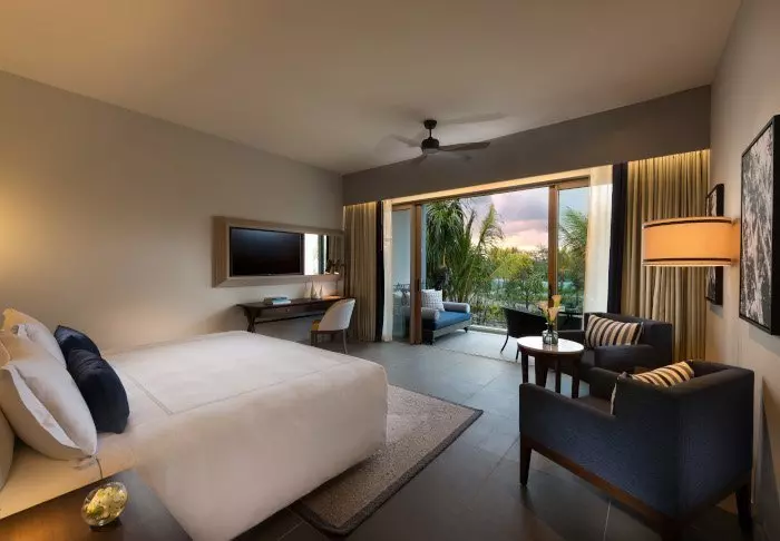 Die Zimmer sind groß, geräumig und in mauritischem und asiatischem Stil eingerichtet, entweder mit Balkon oder mit Terrasse. Alle Zimmer liegen in Richtung Meer. Die Zimmer sind alle mit Klimaanlage, Minibar, Tee- und Kaffee-Ecke, Flachbildschirm-TV-Gerät und allem anderen, was man von einem Fünf-Sterne-Resort erwarten kann, ausgestattet. Es gibt im ganzen Hotel gratis WLAN.