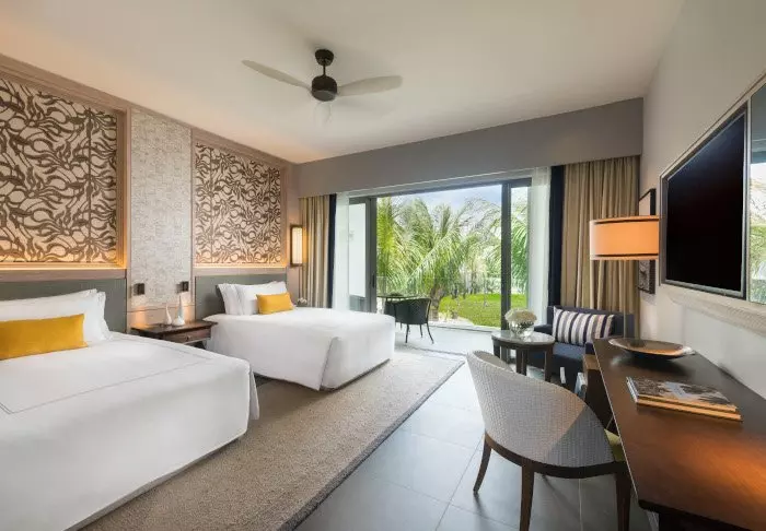 Es gibt 261 Zimmer, die alle einen Blick auf das Meer oder auf die großen tropischen Gärten um das Hotel herum haben. Alle Zimmer verfügen über einen privaten Balkon oder eine Terrasse. Es stehen außerdem Klimaanlage, Fernseher und Minibar zur Verfügung.
