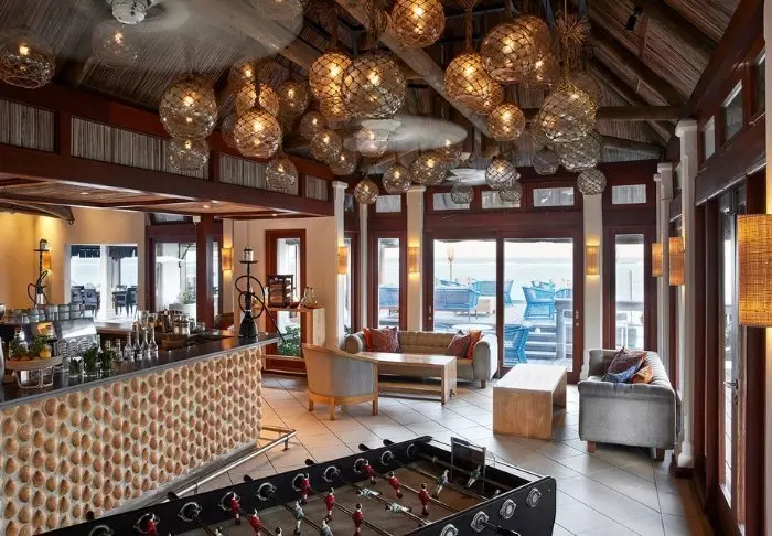 Bei der Ankunft im Veranda Pointe Aux Biches werden Sie mit einem Fußbad empfangen. Weg mit den Schuhen und hinein in die Wanne, sodass Sie wirklich erleben können, was „Barefoot Bliss“ bedeutet. Der Boden in der Rezeption besteht aus Sand, ebenso der Boden in der Bar und dem Restaurant. Sie machen ja schließlich Strandurlaub.