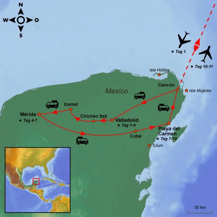 Reizvolle Städte aus der Kolonialzeit mit farbenfrohen Gassen, beeindruckende Ruinen aus der Mayazeit, magische Cenote und kreideweiße Sandstrände am Karibischen Meer – auf dieser Reise erleben Sie ein wenig von allem. Wir haben einige Höhepunkte von Yucatán zusammengestellt und Sie entscheiden selbst, ob Sie weitere Erlebnisse hinzufügen wollen oder vielleicht die Reise zu einer der paradiesischen Inseln in der Region verlängern möchten.