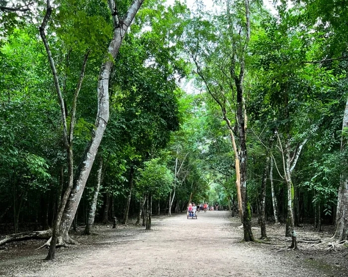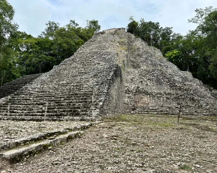 Zunächst geht es nach Cobá, einst die größte und bedeutendste Maya-Stadt der Region. Die Ruinen von Cobá liegen abenteuerlich und fast geheimnisvoll versteckt im Dschungel – hier können Sie Ihrem Entdeckerdrang freien Lauf lassen. Die Ruinen sind über ein großes Gebiet mit alten Verbindungspfaden, den sogenannte Sacbé verstreut. Sie werden in einem Radtaxi über die gewundenen Pfade durch die üppige Vegetation gefahren und erleben die mystischen Tempel und die beeindruckende Nohoch Mul-Pyramide, die mit ca. 42 m die höchste Pyramide auf der Yucatán-Halbinsel, die majestätisch über die Baumwipfel ragt.