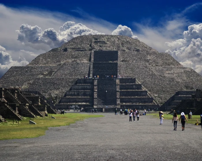 Weiter geht es zu einer der größten archäologischen Stätten Lateinamerikas, der Tempelstadt Teotihuacán, die „Der Ort, an dem Menschen zu Göttern werden“ bedeutet. Sie laufen entlang der 3 Kilometer langen Avenida de los Muertos (Allee der Toten), wo Sie riesige Tempel und Pyramiden sehen werden, die bis ins Jahr 200 v. Chr. zurückreichen, aber über einen längeren Zeitraum gebaut wurden. Zu den bemerkenswerten Höhepunkten gehören der Tempel des Quetzalcoatl, an dem mehr als 200 geopferte Kriegsgefangene entdeckt wurden, der Palast Quetzalpapalotl, die Mondpyramide (60 m) und die Sonnenpyramide (70 m), die im Zentrum der Stadt errichtet wurden, über einer 100 m langen Höhle, die als Geburtsort der Menschheit gilt.
