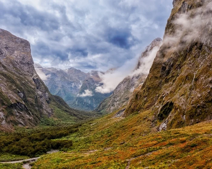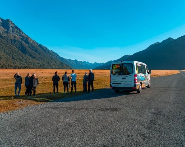 Von Queenstown folgen Sie zunächst dem Ufer des malerischen Lake Wakatipu und fahren weiter durch die dramatische Landschaft der Devil’s Staircase. Ihre Route führt durch die idyllische Stadt Te Anau und hinein in den Fiordland-Nationalpark, wo sich die Landschaft ständig verändert. Unterwegs erwarten Sie weite Gletschertäler wie das Eglinton Valley, spiegelglatte Seen wie die Mirror Lakes, tiefe Flusstäler wie der Hollyford River und dichte Wälder. Es gibt zahlreiche Möglichkeiten, an den schönsten Aussichtspunkten anzuhalten und Fotos zu machen.