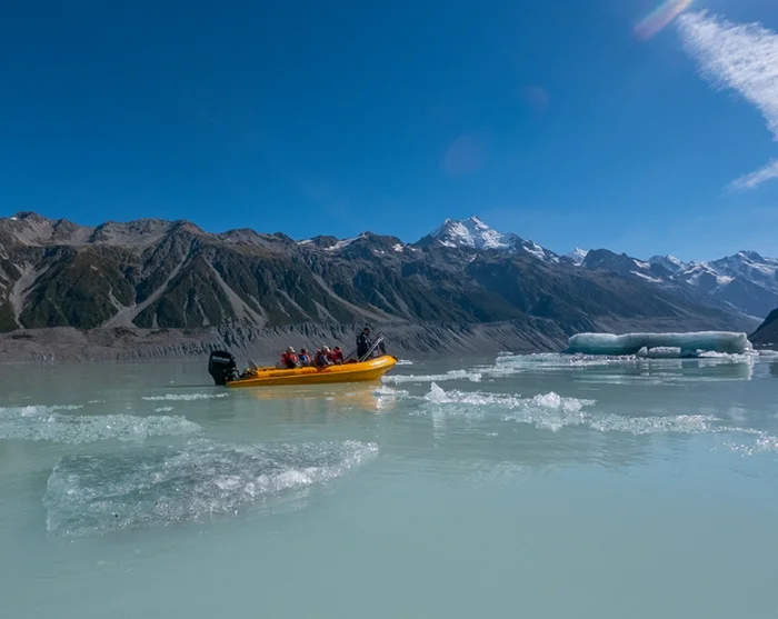 Erleben Sie bei einem Bootsausflug auf dem Tasman-See den Tasman-Gletscher aus nächster Nähe.