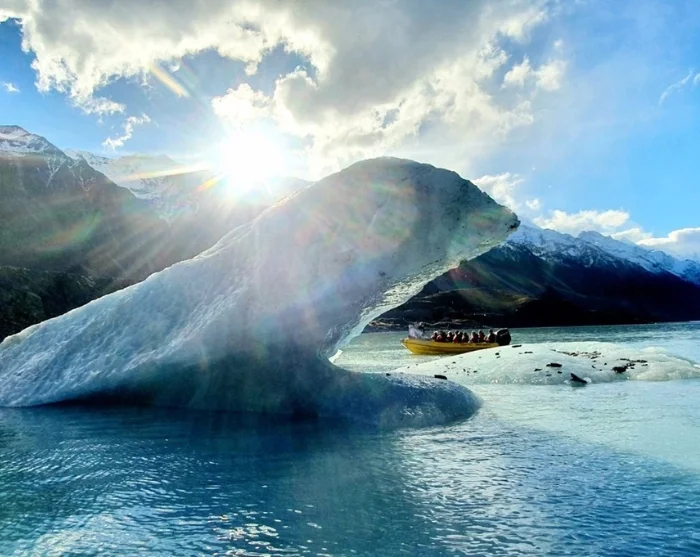 Es gibt weltweit nur wenige Gletscher, die in einen Gletschersee münden und noch weniger, zu denen normale Menschen Zugang haben. Bei einem interessanten Bootsausflug inmitten großer Eisschollen und turmhoher Eisklippen bekommen Sie einen faszinierenden Einblick in die Natur am größten Gletscher Neuseelands.