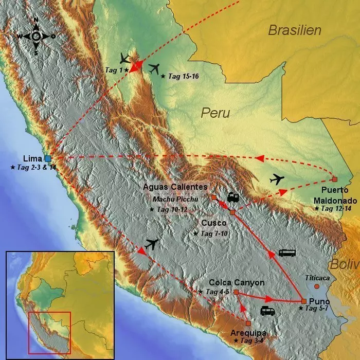 Heute fliegen Sie ab und es geht mit Zwischenlandung(en) nach Peru.