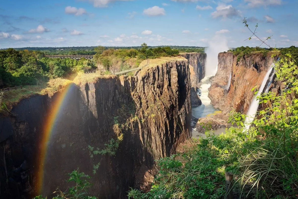 Die Wasserfälle erstrecken sich über 1,7 km. Jede Sekunde stürzen mehr als 1.000 Kubikmeter Wasser rund 100 Meter in die Tiefe. Noch dazu erheben sich die Wasserspritzer mehrere hundert Meter über den Wasserfällen in die Luft. Das ähnelt Rauch zum Verwechseln, weshalb die Einheimischen den Wasserfall auch „Mosi-oa-Tunya“ nennen, was übersetzt „Rauch, der donnert“ bedeutet.
