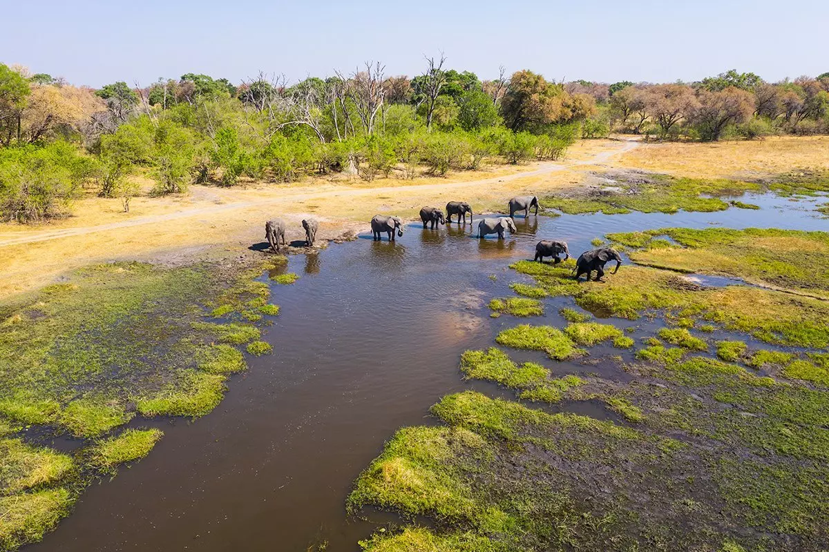 Das UNESCO-geschützte Okavangodelta ist eines der einzigartigen Naturgebiete Botswanas. Das Okavangodelta gehört zu den größten Feuchtgebieten der Welt und stellt eine großartige Wasserquelle, u. a. für tausende Elefanten, dar. Es ist außerdem ein Paradies für Vogelfreunde und alle, die Elefanten lieben. Wenn Sie Glück haben, können Sie einige der am stärksten vom Aussterben bedrohten großen Säugetierarten der Welt hier sehen, z. B. Geparden, weiße und schwarze Nashörner und afrikanische Wildhunde.
