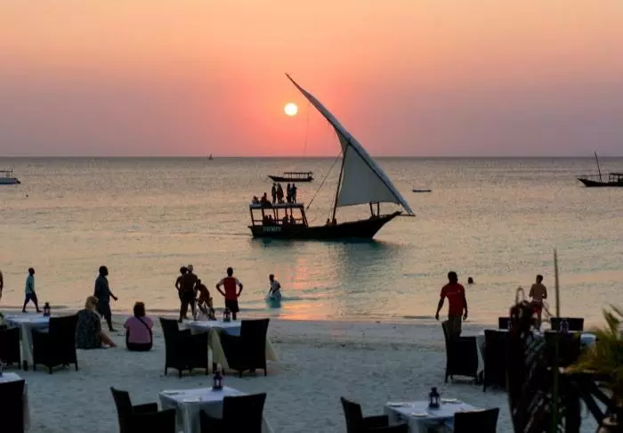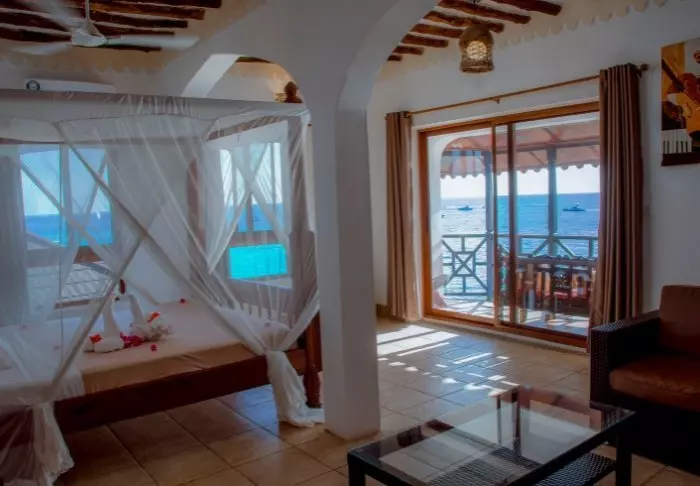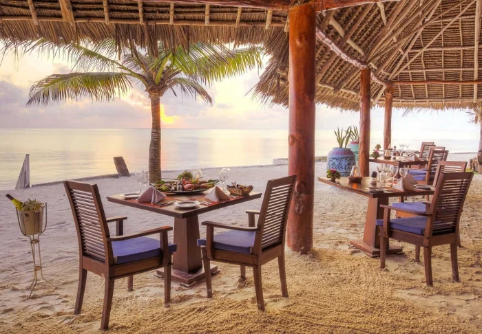 Tagsüber können Sie entspannt durch den fruchtbaren Garten spazieren, zur Erfrischung ins Schwimmbecken eintauchen, sich in der Wellness-Abteilung verwöhnen lassen, im klaren Meerwasser eine Runde schwimmen oder die farbenfrohe Unterwasserwelt von Sansibar bei einem Tauchgang erkunden.