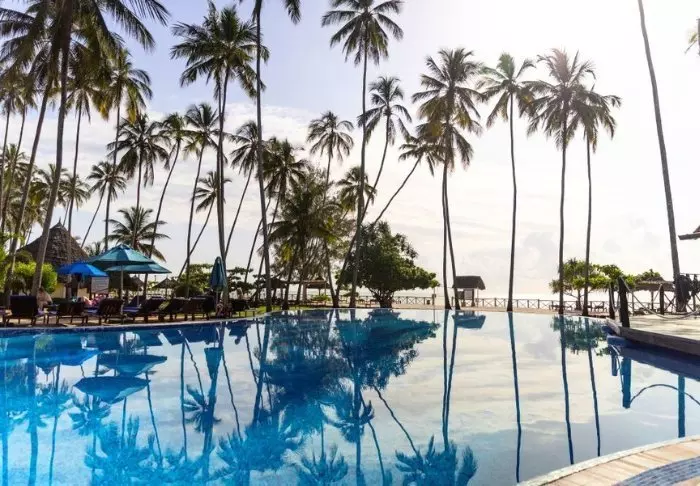 Riu Palace Zanzibar ist ein 5-Sterne-Hotel, das an der nordwestlichen Küste von Sansibar am Nungwie Beach liegt, einem der schönsten Strände der Insel mit weißem Sand und türkisfarbenem Wasser. Das Hotel ist von einem tropischen Garten mit Palmen und exotischen Blumen umgeben.