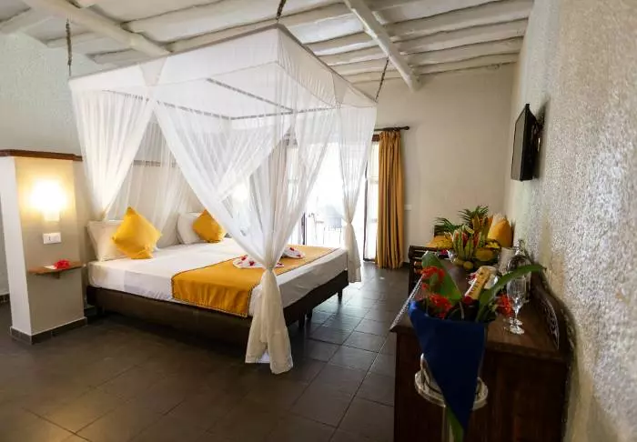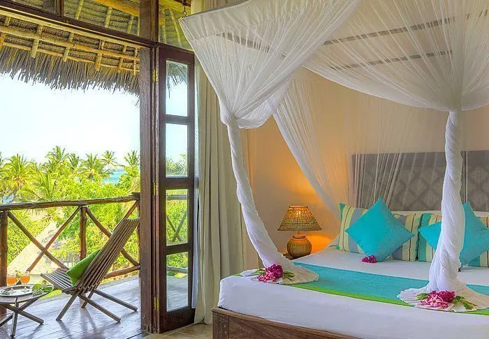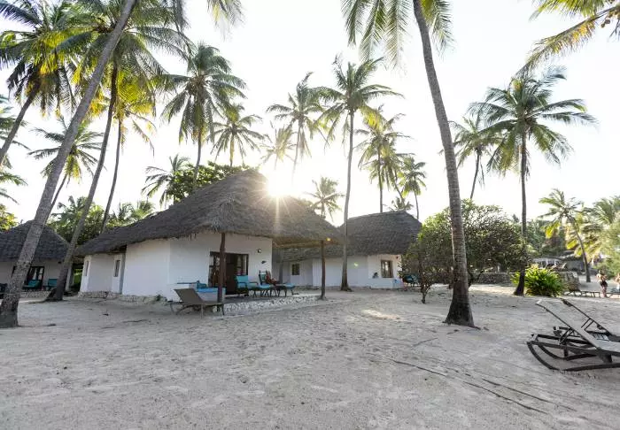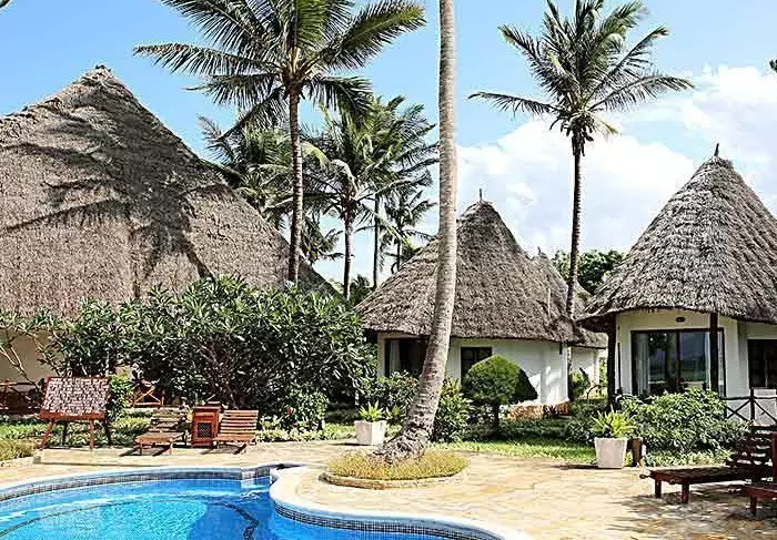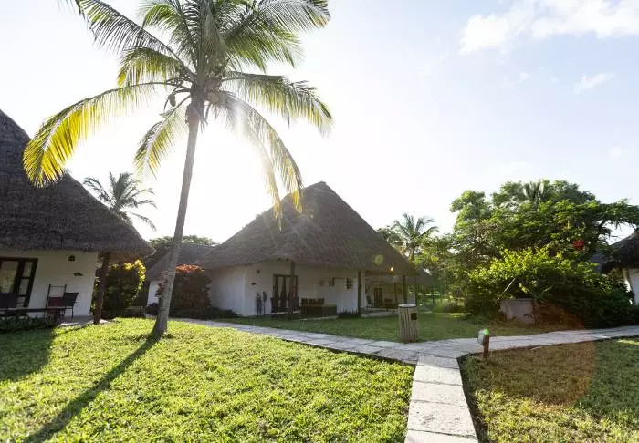 Das Resort besteht aus Rundhütten, im traditionellen afrikanischen Stil erbaut. Alle Zimmer sind Richtung Meer ausgerichtet, Balkon, Klimaanlage, Moskitonetzen, TV, Telefon, Minibar, Badezimmer mit Dusche, WC und Fön.