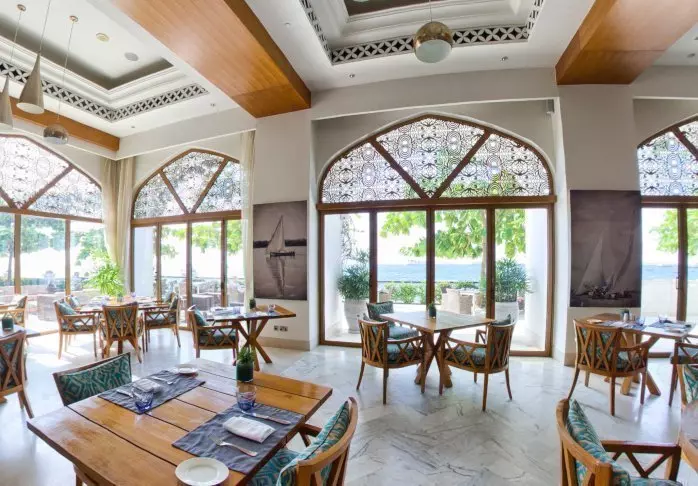 Anhand seiner zentralen Lage in Stone Town – direkt am Wasser – kann man von der Terrasse aus den lebhaften Verkehr der Handels- und Fischerboote verfolgen.