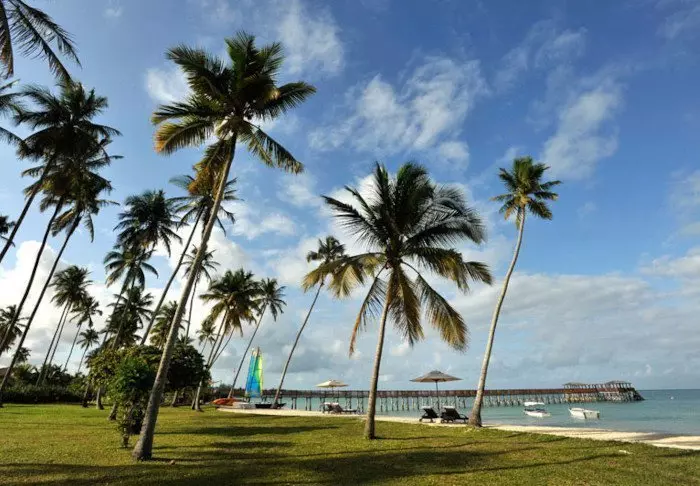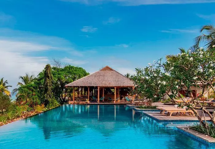 Das Luxusresort befindet sich an der Südwestküste der Insel, nur eine gute Autostunde vom internationalen Flughafen entfernt. Aber man glaubt, in einer ganz anderen Welt gelandet zu sein. Die 66 ruhigen und exklusiven Villen sind von einem tropischen Garten mit Aussicht auf Kokospalmen umgeben, welche am kilometerlangen weißen Sandstrand im Wind wogen.