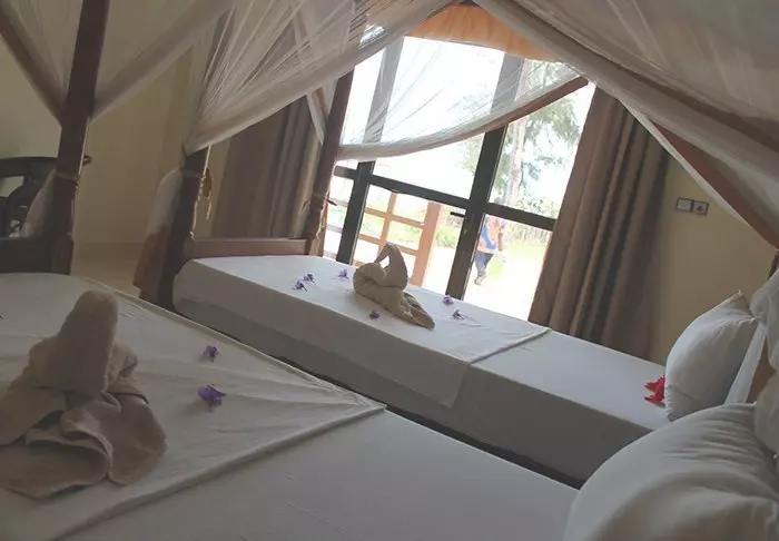 Alle Zimmer sind im ostafrikanischen Stil mit Holzmöbeln und erfrischenden Farben an den Wänden eingerichtet. Alle Zimmer verfügen über Moskitonetz, Klimaanlage, Safe, Minibar und Tee-/Kaffee-Ecke. Darüber hinaus besitzen alle Zimmer eine eigene Veranda.
