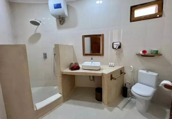 Das Hotel bietet 24 Zimmer, die in verschieden großen Bungalows untergebracht sind. In jedem Bungalow befinden sich zwei Zimmer. Jedes Zimmer hat einen eigenen Eingang und eine gemütliche Terrasse. Die Zimmer sind mit traditionellen Möbeln, einem eigenen Badezimmer, Klimaanlage, Safe und einem kleinen Sitzbereich für optimalen Komfort ausgestattet.