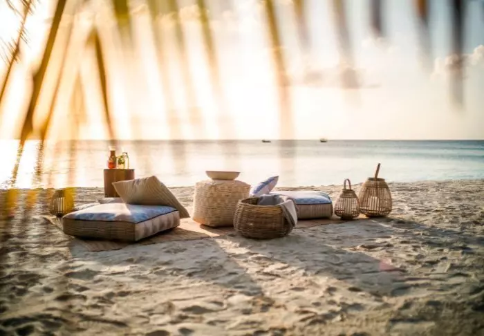 Das Mahali liegt am kreideweißen Sandstrand. Hier befindet sich natürlich auch die Bar des Hotels, sodass Sie mit den Füßen im Sand einen kühlen Drink genießen können.