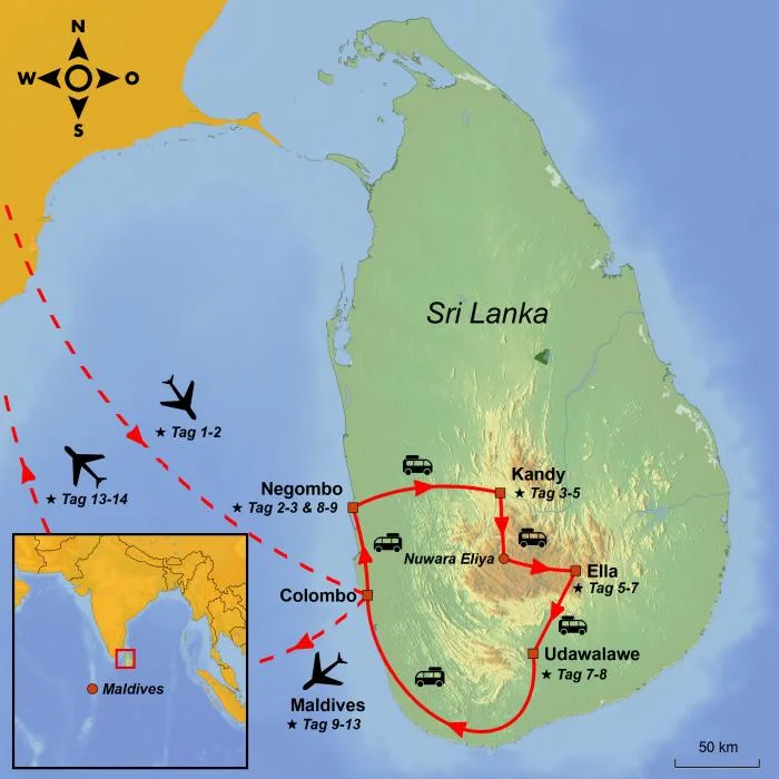 Die Reise neigt sich nun dem Ende zu, und Sie kehren mit Ihrem Koffer voller Erlebnisse und Sinneseindrücke aus dem Süden Sri Lankas und einer der maledivischen Paradiesinseln nach Hause zurück.