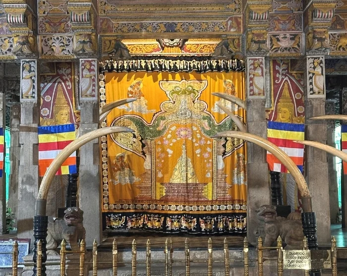 Wenn der Nachmittag heranbricht, bietet ein Besuch des Zahntempels die Möglichkeit, den Buddhismus hautnah zu erleben. Dieser heilige Tempel ist ein Hauptgrund, warum Kandy Teil des UNESCO-Welterbes ist, und soll einen der Zähne Buddhas beherbergen, der 1590 aus Indien nach Sri Lanka geschmuggelt wurde. Wenn Sie ein Ticket im Voraus gebucht haben, können Sie danach eine Tanzshow in einem nahegelegenen Kulturhaus besuchen, die traditionellen sri-lankischen Tanz mit Feuer, Trommeln und bunten Kostümen präsentiert.