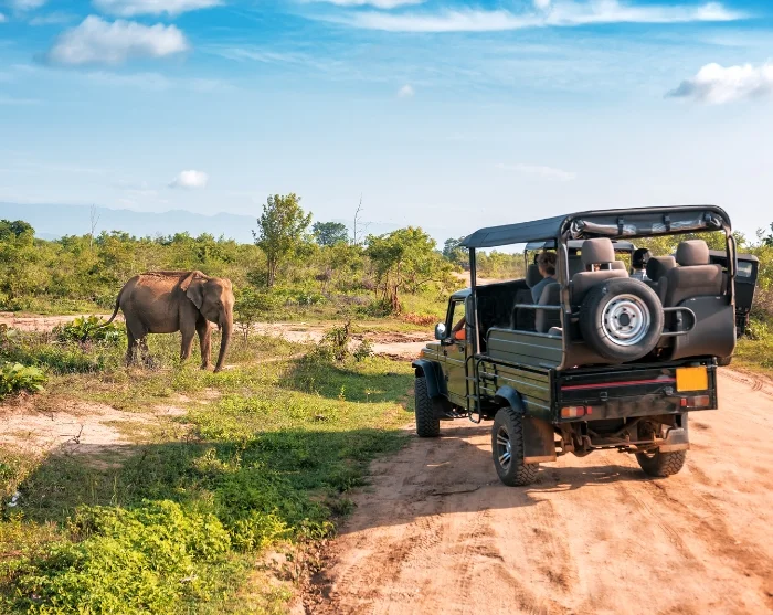 Früh am Morgen machen Sie sich bereit, den Udawalawe Nationalpark im ersten Licht zu erkunden, wenn die Tiere oft aktiv sind und die Sonne die Landschaft in goldene Töne taucht.