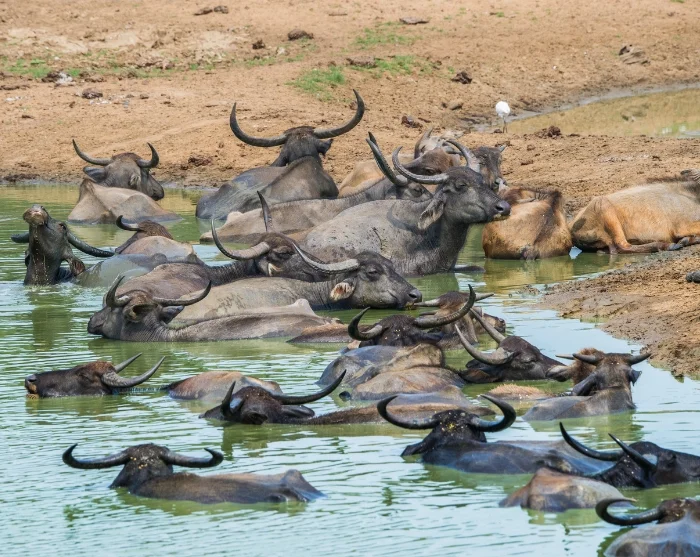 Die Landschaft in Udawalawe ist offen und trocken, mit niedriger Buschvegetation und grasigen Flächen, was es einfacher macht, die Tiere zu sichten. Neben Elefanten könnten Sie auch das Glück haben, Wasserbüffel, Wildschweine, Schakale, Hirsche, Krokodile und einen reichen Vogelbestand mit Adlern, Reihern und bunten Eisvögeln zu sehen.