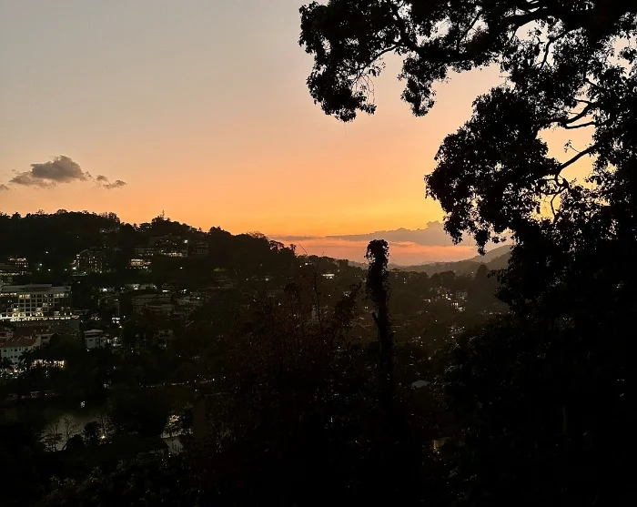 Wenn die Nacht hereingebrochen ist, finden Sie Ihren Platz in einem der Restaurants an den Stadtbergen mit Blick auf das Tal und die umgebenden Berge, wo Sie das Abendessen genießen können, während Sie Kandy im schönen Abendlicht bewundern.