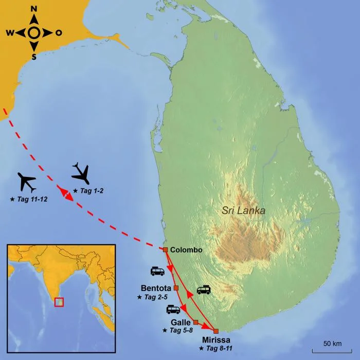 Von den weichen Sandstränden Bentotas zu den stimmungsvollen Gassen in Galle Fort und den idyllischen Buchten bei Mirissa. Eine Reise, bei der einzigartiges Strandleben und die farbenfrohe Kultur Sri Lankas im Mittelpunkt stehen.