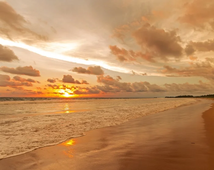 Abends können Sie bei einem entspannten Spaziergang am Strand dem warmen Farbenspiel des Sonnenuntergangs am Abendhimmel folgen und anschließend in einem der vielen lokalen Restaurants der Gegend die delikate Küche Sri Lankas genießen.