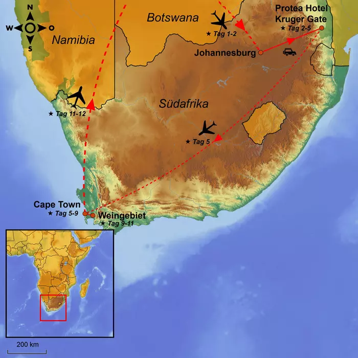 Sie übernachten in der Nähe zum Krüger-Nationalpark. Kommen Sie auf eine Safari, einen geführten Bush Walk, sehen Sie die Panoramaroute und beenden Ihre Reise in Cape Town.