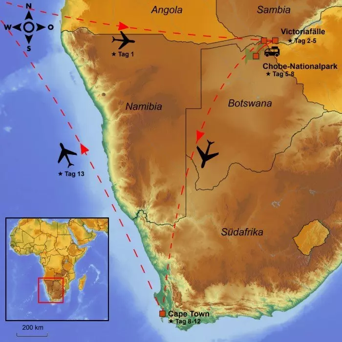 Diese Reise kombiniert drei der größten Highlights im Süden Afrikas: die gigantischen Victoriafälle an der Grenze zwischen Zambia und Simbabwe, eine Safari im fantastischen Chobe-Nationalpark in Botswana und das lebendige wunderschöne Cape Town in Südafrika. Wasser, Safari und Großstadt bei einer einzigen Reise.