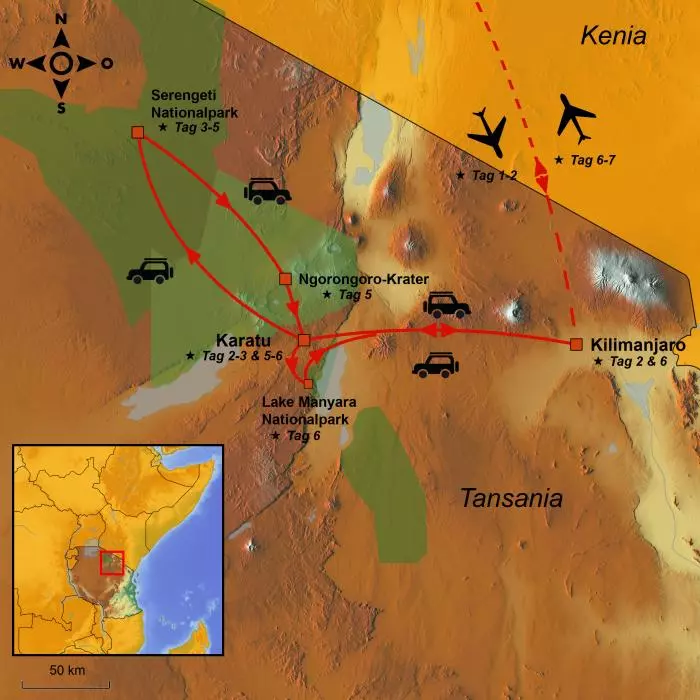 Diese Reise führt Sie zu den wichtigsten Höhepunkten einer Safarireise in Tansania: Safari in der Serengeti, Ngorongoro-Krater, Ngorongoro Conservation Area und Lake Manyara Nationalpark. Hier haben Sie die Möglichkeit, alle ikonischen Tiere Afrikas auf einer kurzen und kompakten Safarireise zu erleben. Gleichzeitig erfahren Sie, wie es ist, sowohl in einem Hotel als auch in einem Zeltcamp zu übernachten, in dem Sie die großartige afrikanische Natur hautnah erleben können. Die Zelte sind mit richtigen Betten, einem eigenen Bad und eigener Toilette ausgestattet. Ein Höhepunkt auf Ihrer Reise.