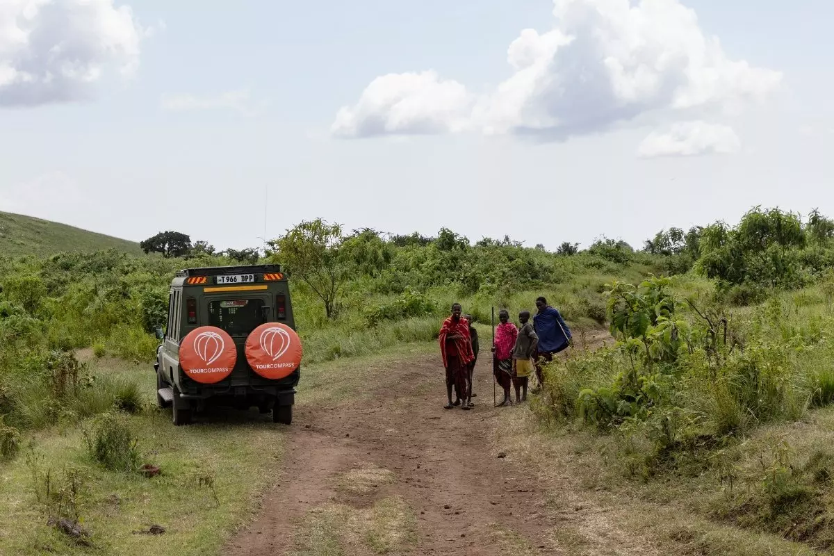Nach dem Frühstück und dem Auschecken aus dem Hotel geht es weiter durch das hügelige Hochland Ngorongoros, wo die rot gekleideten Masai in runden Hütten leben und ihr Vieh zwischen den Zebras, Gnus und Giraffen der Savanne grast. Unterwegs ist genügend Zeit, um das mitgebrachte Lunchpaket zu genießen.