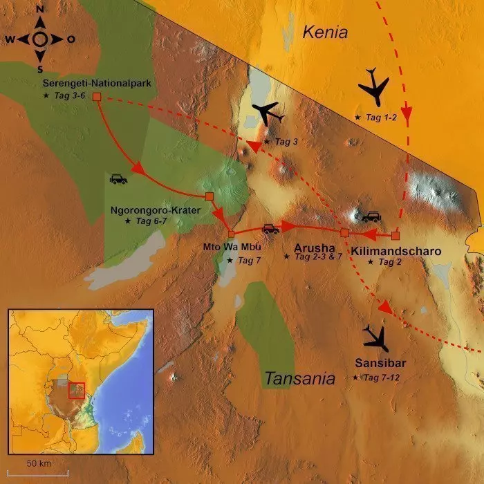 Nach diesem interessanten Erlebnis werden Sie zum Flughafen gebracht, von wo Sie zur exotischen Insel Sansibar weiterfliegen.