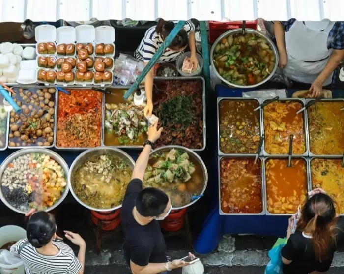 Sie kommen in einem beliebten Pad-Thai-Restaurant an, das als Bib Gourmand-Lokal anerkannt ist – eine Auszeichnung des Michelin-Führers für Restaurants, die fachmännisch zubereitete Speisen zu erschwinglichen Preisen anbieten. Hier genießen Sie Thailands köstliches Nationalgericht, serviert auf Bananenblättern, und haben sogar die Möglichkeit, einen Blick in die Küche zu werfen, um zu sehen, wie die Speise zubereitet wird.
