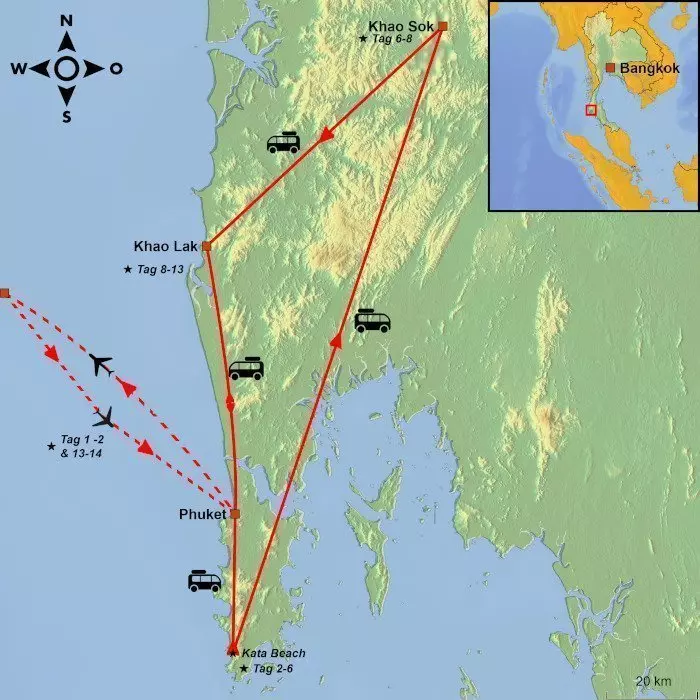 Freuen Sie sich auf Entspannung an der Nr. 1 der Badeurlaubsdestinationen Thailands – Phuket – und auf Erlebnisse im schönsten Nationalpark Thailands, Khao Sok. Beenden Sie die Reise im ruhigen und authentischen Strandparadies Khao Lak.