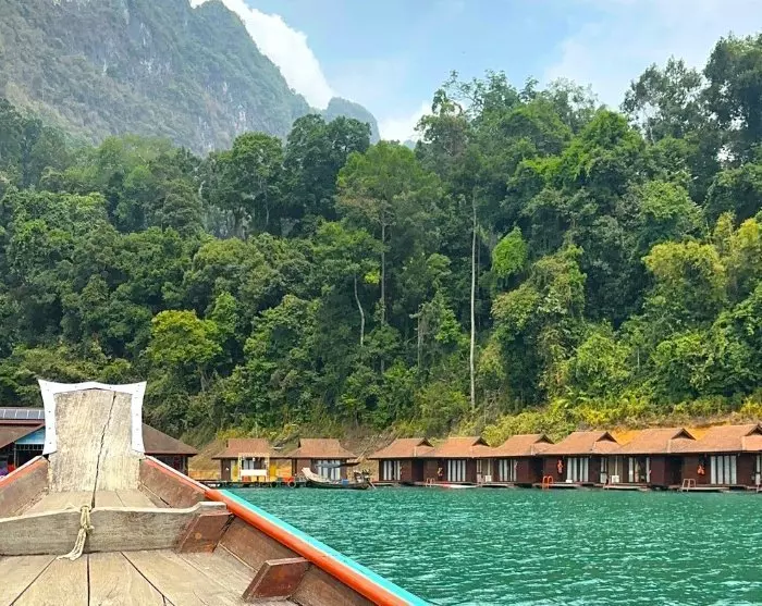 Danach werden Sie zur Mole Ratchabrapa, unweit eines beeindruckenden Damms, gefahren. Dort gehen Sie an Bord eines Langbootes und fahren auf den Chiao-Lan-See hinaus. Genießen Sie die majestätische Landschaft mit den ikonischen Kalksteinfelsen.