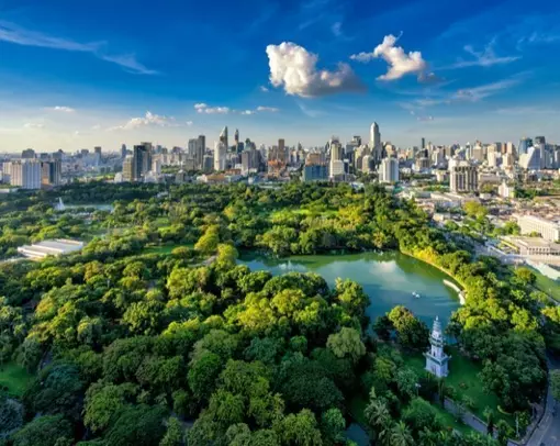 Glücklicherweise gibt es in Bangkok auch viele grüne Oasen, wenn man sich aus der tropischen Hitze und dem lärmenden Verkehr zurückziehen will. Erwähnenswert sind der Lumphini- und der Benjakiti-Park oder die grüne Insel Bang Krachao, die auch „Dschungel Bangkoks“ genannt wird. Hier scheint die Zeit stillzustehen.