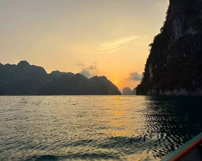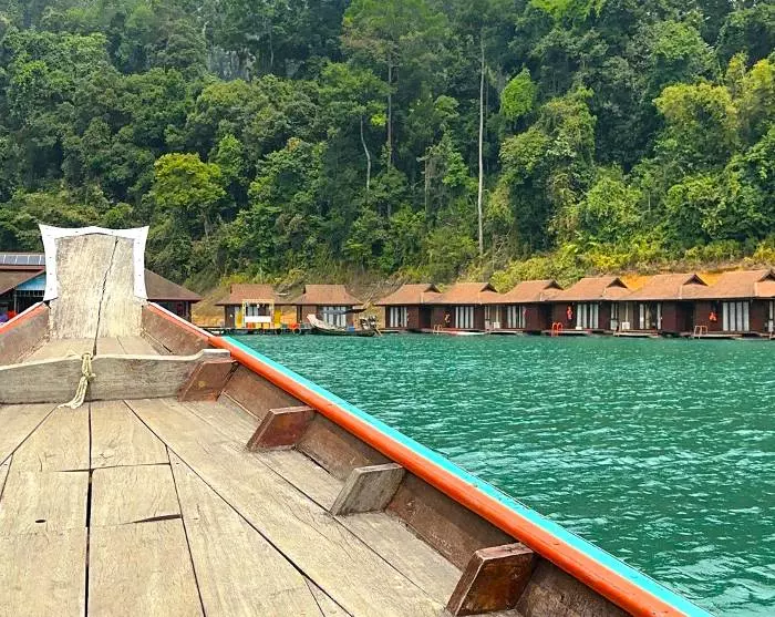 Danach werden Sie zur Mole Ratchabrapa, unweit eines beeindruckenden Damms, gefahren. Dort gehen Sie an Bord eines Langbootes und fahren auf den Chiao-Lan-See hinaus. Genießen Sie die majestätische Landschaft mit den ikonischen Kalksteinfelsen.